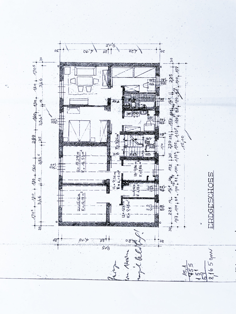 Insgesamt verfügt das Doppelhaus über eine Wohnfläche von ca. 293 m² zzgl. weiterer Nutzflächen. Der Hauptwohnbereich des Hauses befindet sich in der linken Haushälfte und wird zur Zeit von den Eigentümern bewohnt. Mit einer überaus durchdachten und großzügigen Raumaufteilung stehen in diesem Bereich ca. 183 m² Wohnfläche zur Verfügung.